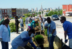 Parks & People engages communities in the creation of green spaces on formerly abandoned lots. They focus on removing impermeable surfaces, creating rain gardens, creating edible gardens, and helping install green infrastructure improvements.