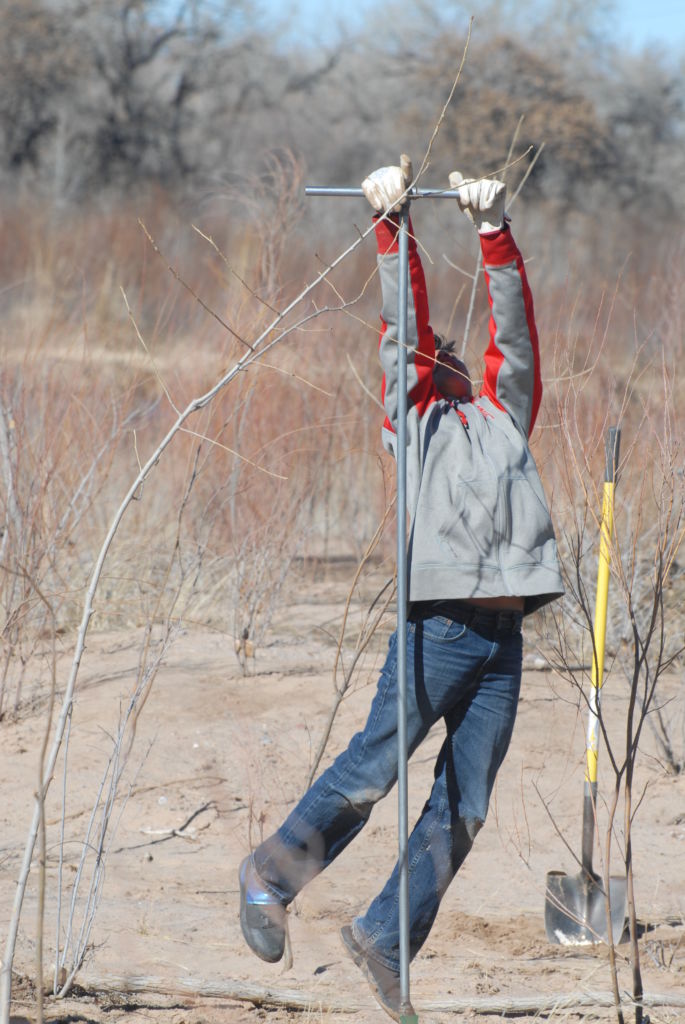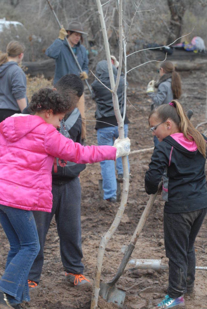 Students from area schools plant trees in the bosque along the banks of the Rio Grande River. Photo provided by CSWCD.