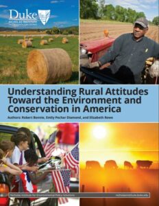Citation: Bonnie, Robert, Emily Pechar Diamond, and Elizabeth Rowe. Understanding Rural Attitudes Toward the Environment and Conservation in America. 2020. Duke University Nicholas Institute for Environmental Policy Solutions. Accessed April 23, 2020 from https://nicholasinstitute.duke.edu/sites/default/files/publications/understanding-rural-attitudes-toward-environment-conservation-america.pdf